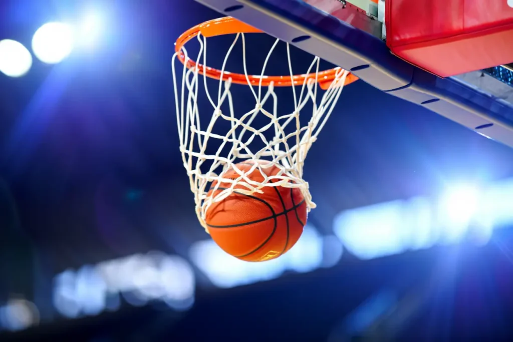A basketball hoop and court representing the thrilling world of NBA sports betting and high-value picks.